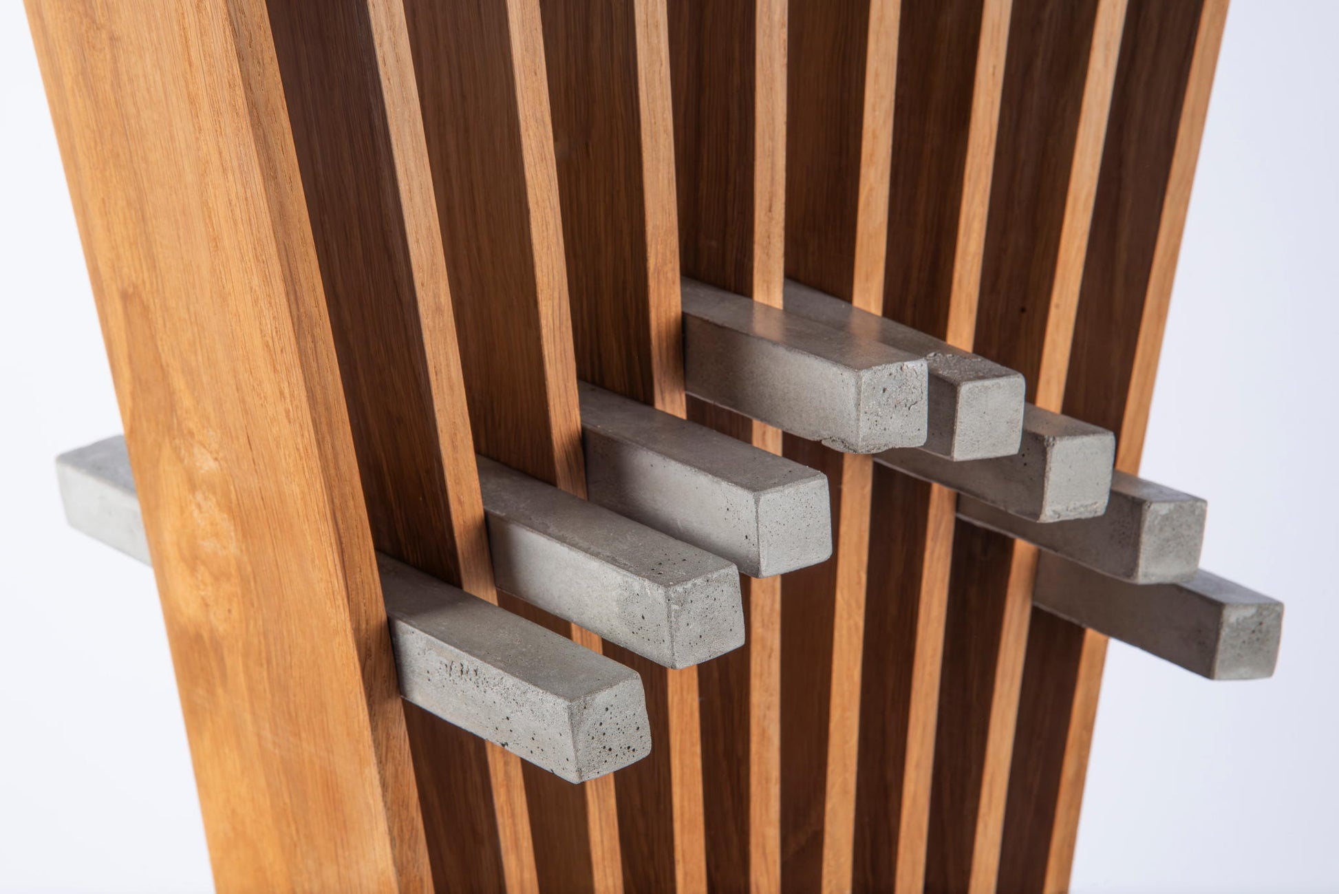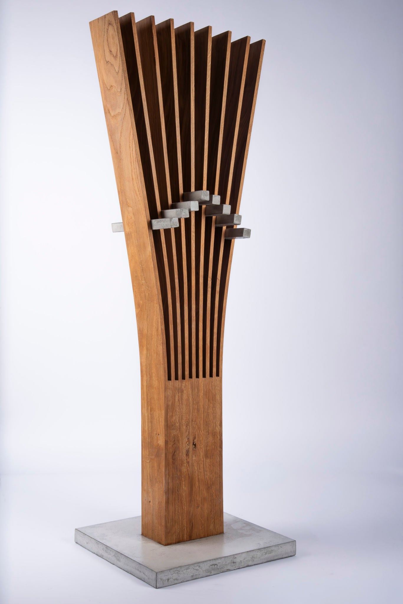- Fan-Inspired Design: Precision-cut oak beam and concrete spacers create a visually captivating, sculptural form